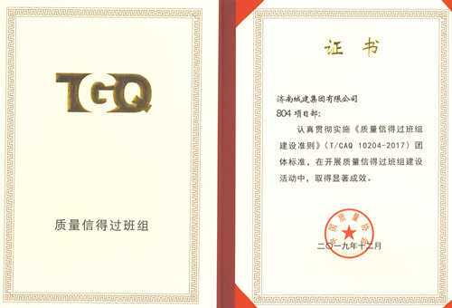 集團(tuán)804項(xiàng)目部榮獲中國(guó)質(zhì)量協(xié)會(huì)“質(zhì)量信得過班組”