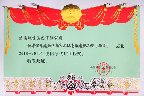 濟南市二環(huán)南路建設工程(西段)榮獲“2018-2019年度國家優(yōu)質(zhì)工程獎”