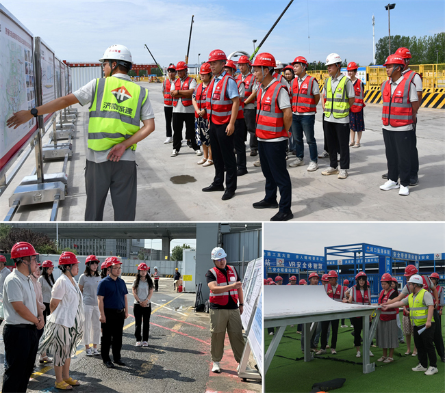 “理論宣講進項目”系列活動在實地觀摩施工一線中拉開序幕。與會人員分別深入濟南城市軌道交通7號線一期工程、起步區(qū)黃河體育中心游泳館及全民健身中心項目和黃崗路穿黃隧道項目現(xiàn)場,直觀感受科技創(chuàng)新、智慧建造和攻堅精神。在塔吊林立的工地,理論宣講與火熱實踐緊密交織,進一步激發(fā)青年職工積極進取、拼搏奉獻的奮斗熱情。
