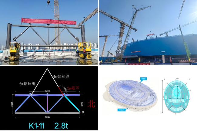 本次首吊的鋼桁架位于屋蓋起始安裝區(qū)域,單榀重量2.8噸。面對屋蓋結(jié)構(gòu)面積大、體量大、跨度大,構(gòu)件節(jié)點(diǎn)三維坐標(biāo)精確定位難等挑戰(zhàn),集團(tuán)建設(shè)團(tuán)隊(duì)創(chuàng)新采用“地面拼裝、整榀吊裝”方案,多臺大型起重機(jī)械協(xié)同作業(yè)。同時,通過強(qiáng)化計(jì)算分析、嚴(yán)控拼裝精度、精準(zhǔn)測量定位、嚴(yán)把焊接質(zhì)量,確保吊裝安全與施工質(zhì)量雙可控,助力實(shí)現(xiàn)首吊圓滿成功。